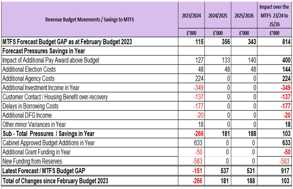 The cumulative impact of the budget pressures on the Medium Term Financial Strategy was forecasting that there would be a further increase in costs of £103,000 taking the overall forecast shortfall to £0.917m by the end of 2025/2026.