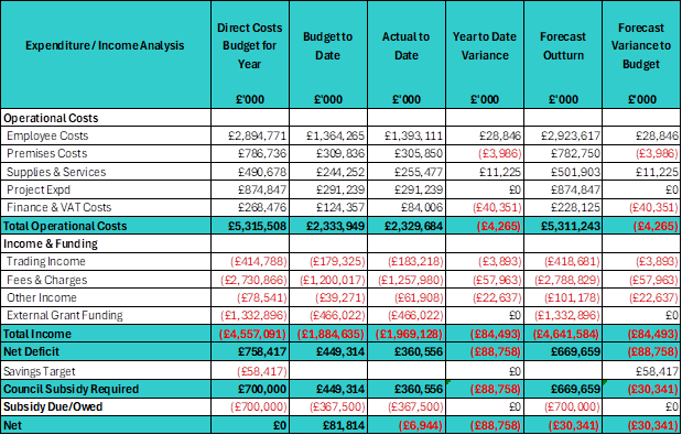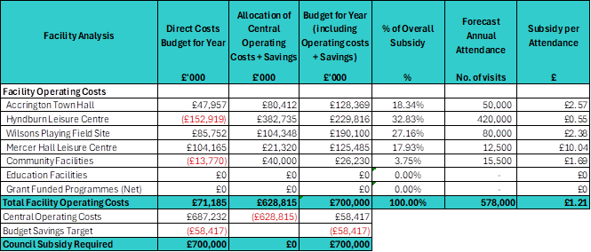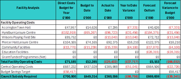 In March 2025, Hyndburn Leisure had set a budget with a forecast deficit of £700,000, which included achieving a savings target of £58,417.