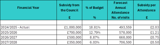There was a reduction in the subsidy requested from £1m in 2024/2025 to £700,000 in 2025/2026 plus a forecast increase in annual attendances from 493,559 in 2024/2025 to 578,000 in 2025/2026.